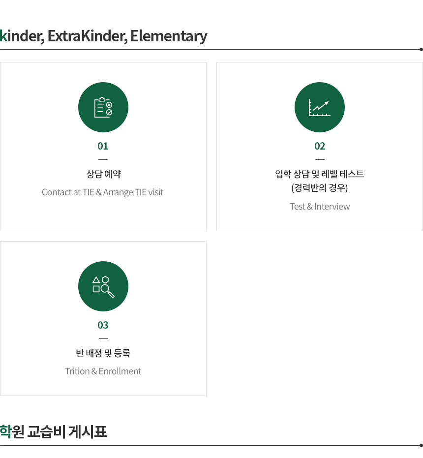 어학 | 영어유치부1 | 1개월 (9:30~1:00) |